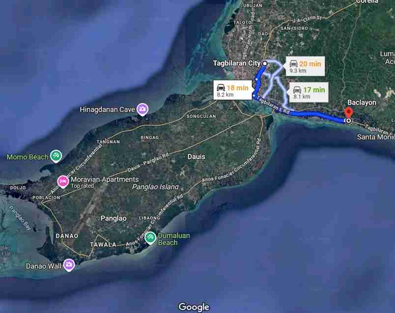 By Private Car/Motorbike: If you rent a motorbike or car in Tagbilaran, just follow the national highway east.