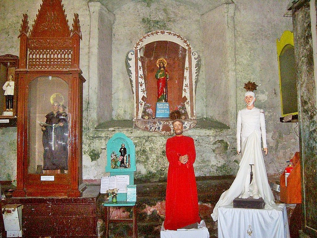 The church was made from blocks of coral stone cut from the sea, dried under the sun, and stacked together. For mortar, they used a mixture of lime, sand, and egg whites, a traditional method used during Spanish times. This helped the building last for centuries, even surviving many natural disasters.