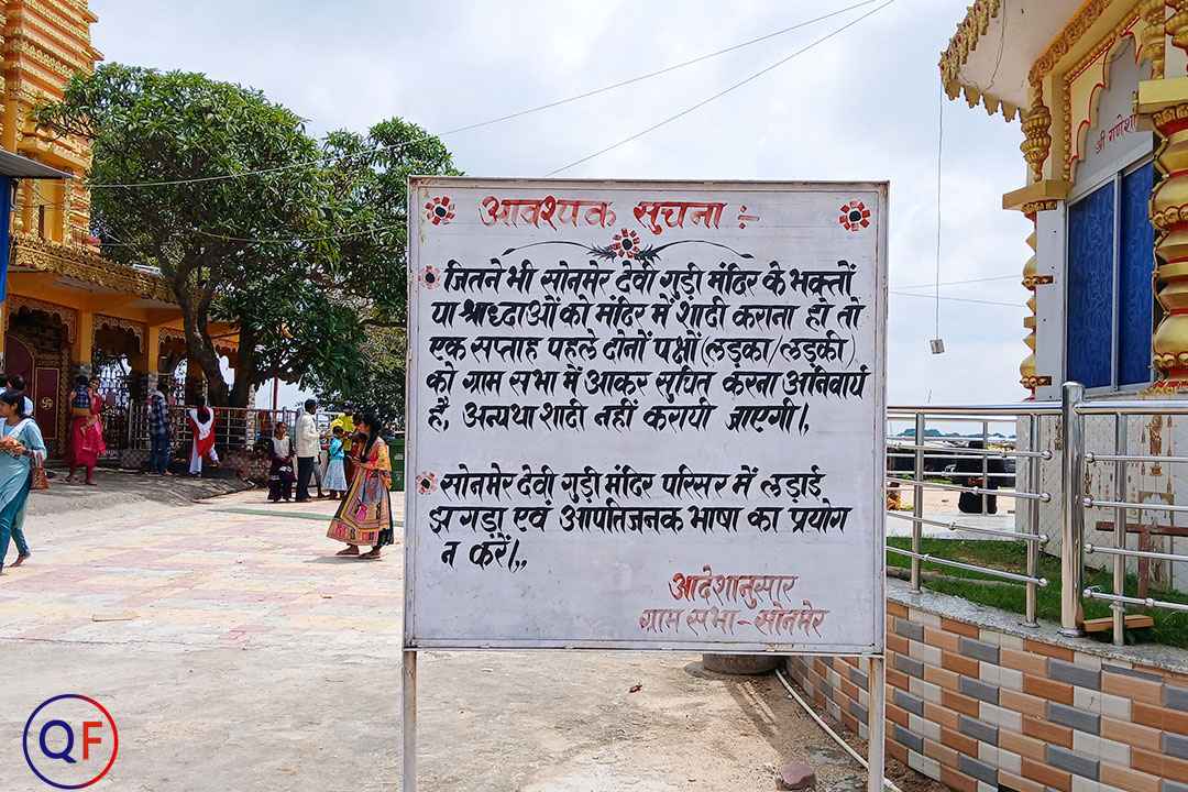 5 km before Karra, there is a board for Maa Sonmer Mandir Dham, which guides visitors directly to the temple.